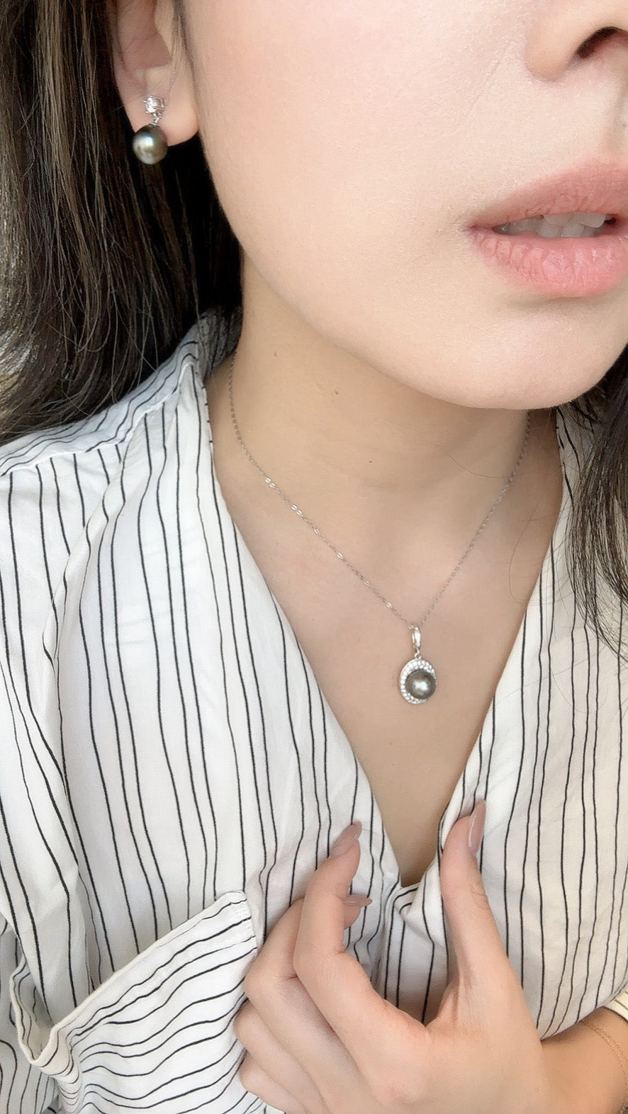 戴妃款大溪地耳钉Tahitian Keshi earrings