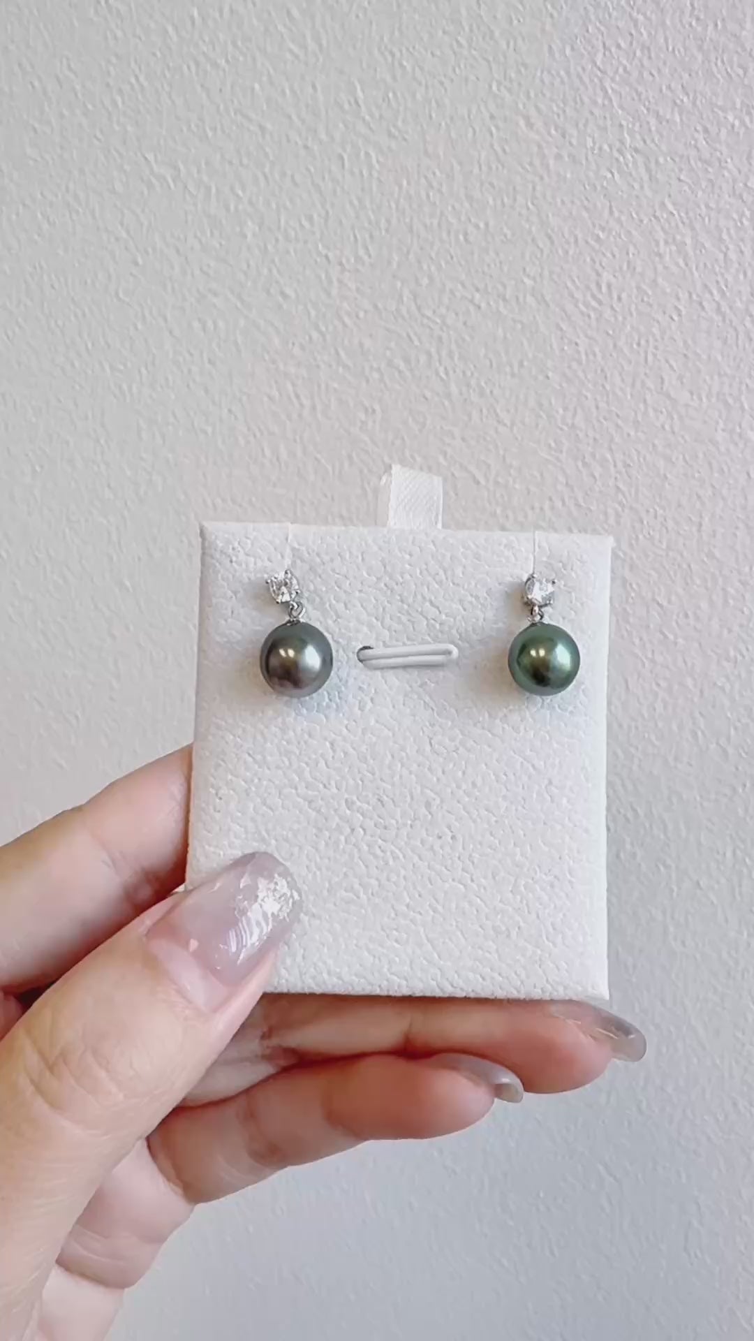 8-9mm大溪地绿珍珠耳坠颜色孔雀绿🦚带点紫色,皮光好像钢珠一样光滑,几乎无暇非常透亮,形状近圆,灵动王妃款耳坠,通体纯银镶嵌。