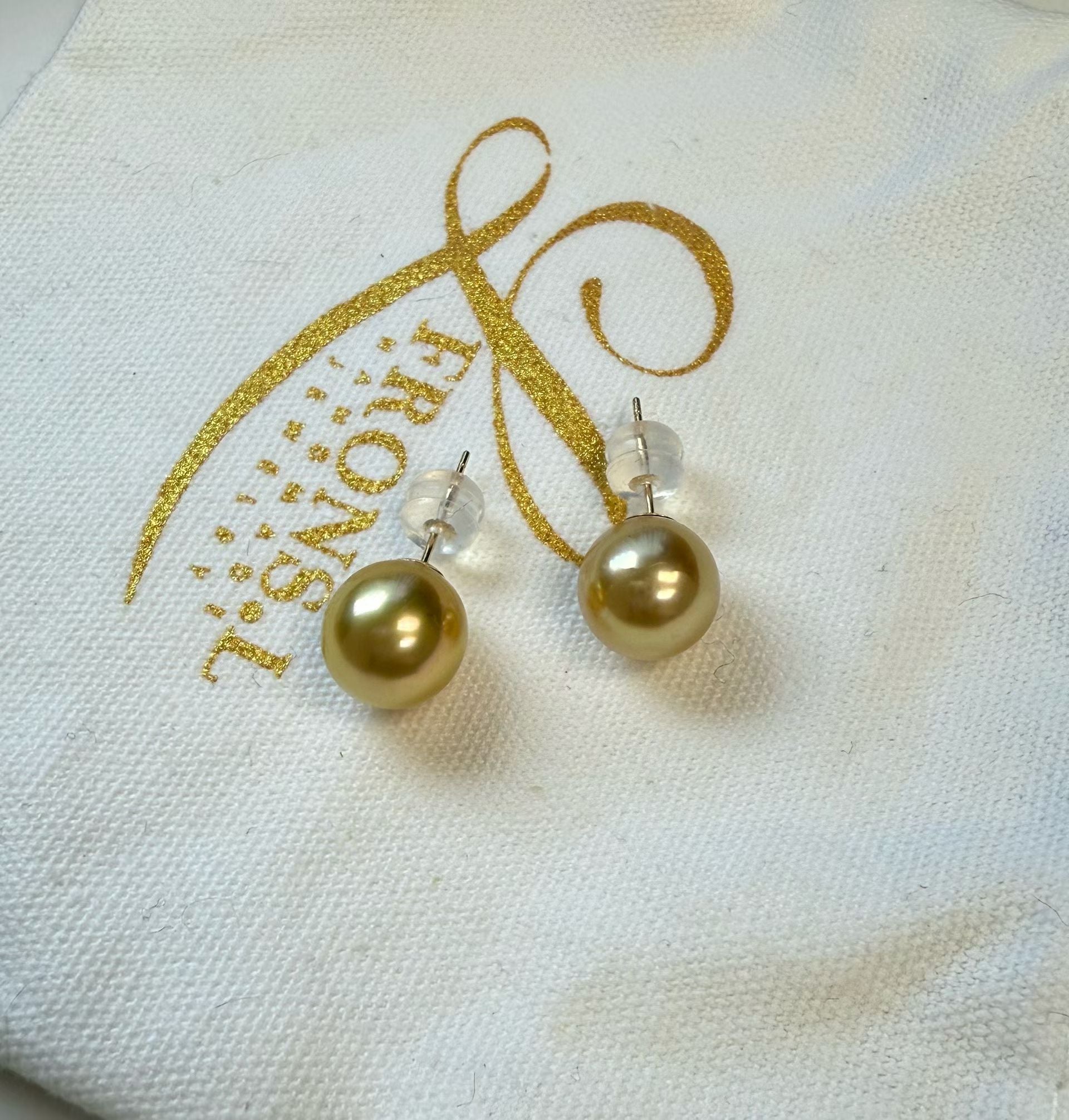 9-10mm正圆帝王浓金南洋金珠素钉,自然光拍摄,可见皮光很好极细微瑕,配18k黄金耳钉,圣诞🎄新年🧧必备的“招财神器”👜