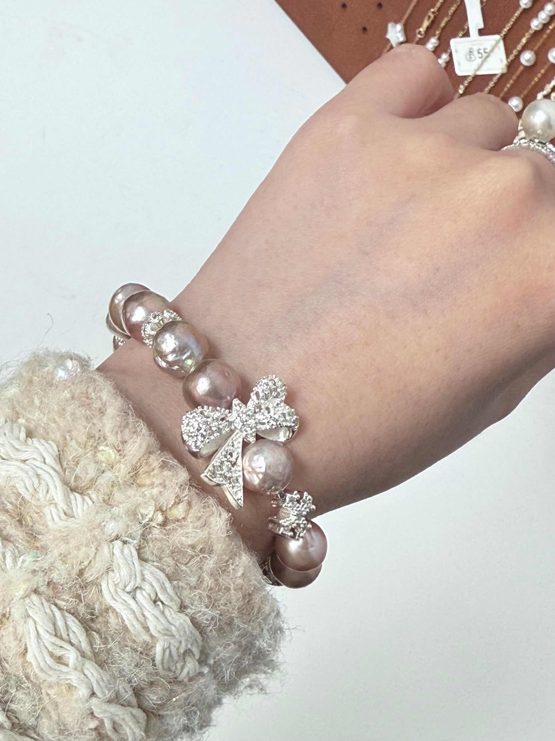设计款蝴蝶结紫色巴洛克珍珠手串✨