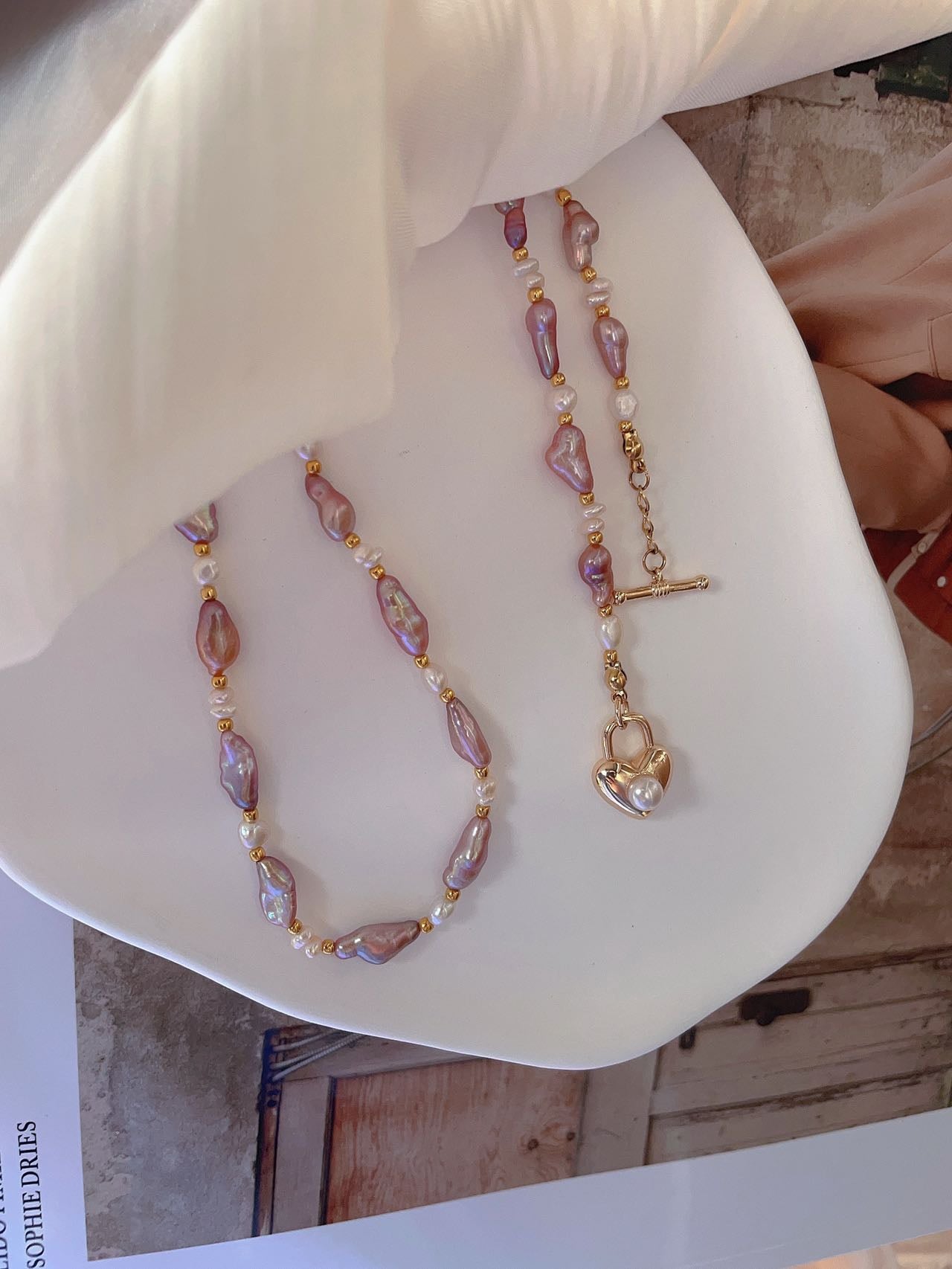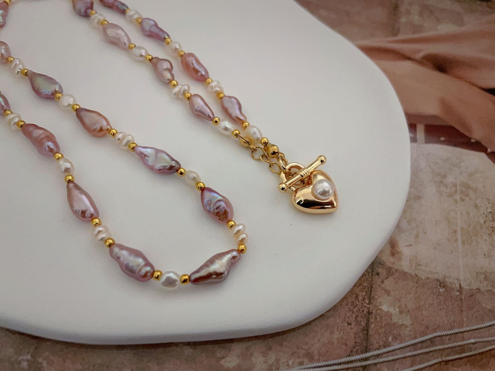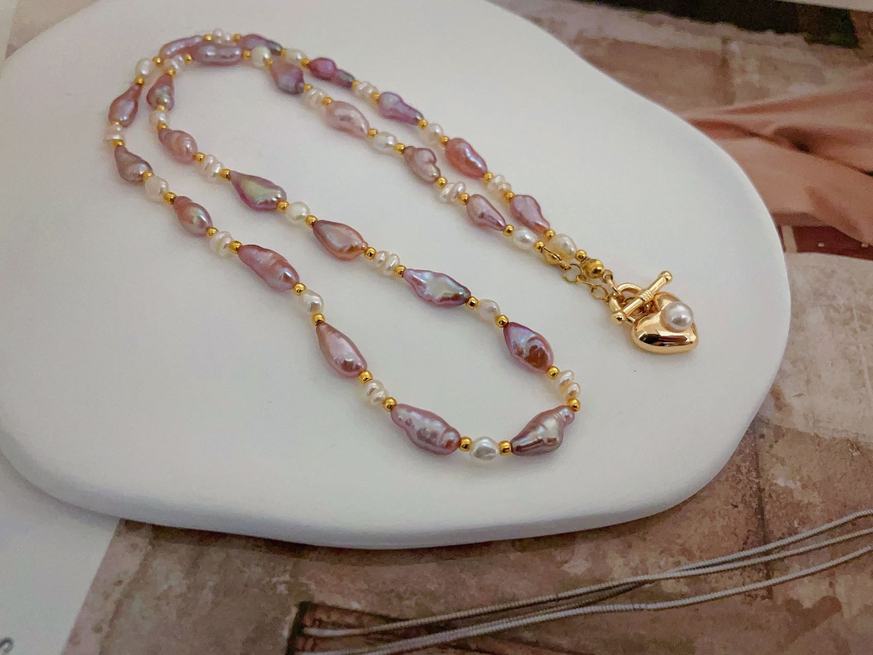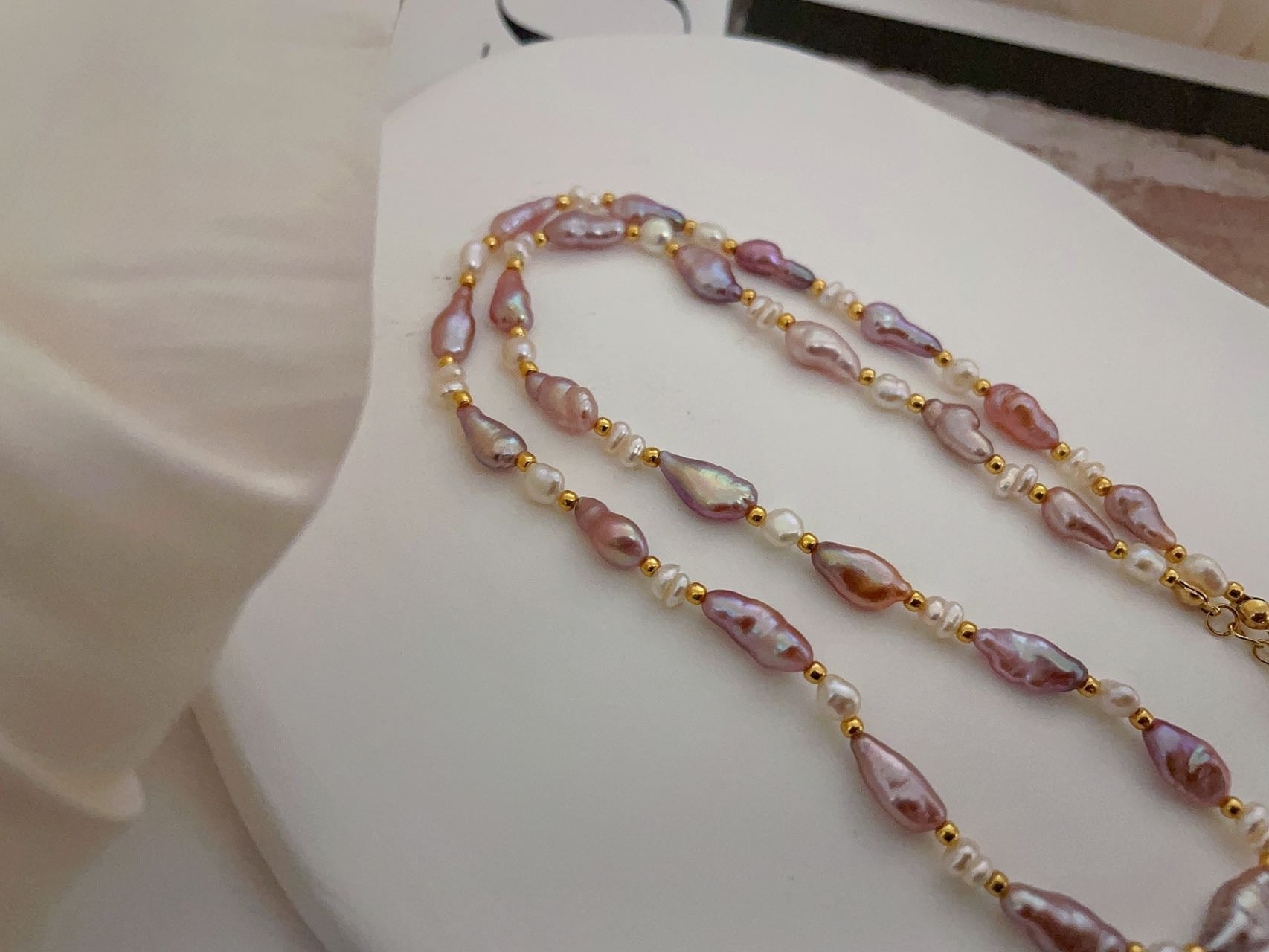 This is a statement necklace strung with baroque biwa freshwater pearls and a 18k yellow gold plated ,perfect for all seasons.