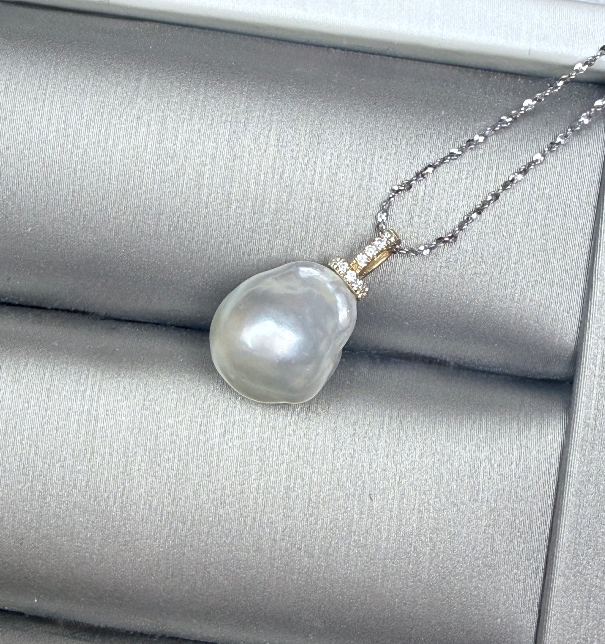 银蓝光底色,带点鎏金又带一点点青绿色,横径11mm高13mm,上身也是休闲又个性,很有存在感的一颗澳白,百搭时尚可任意搭配衣服。